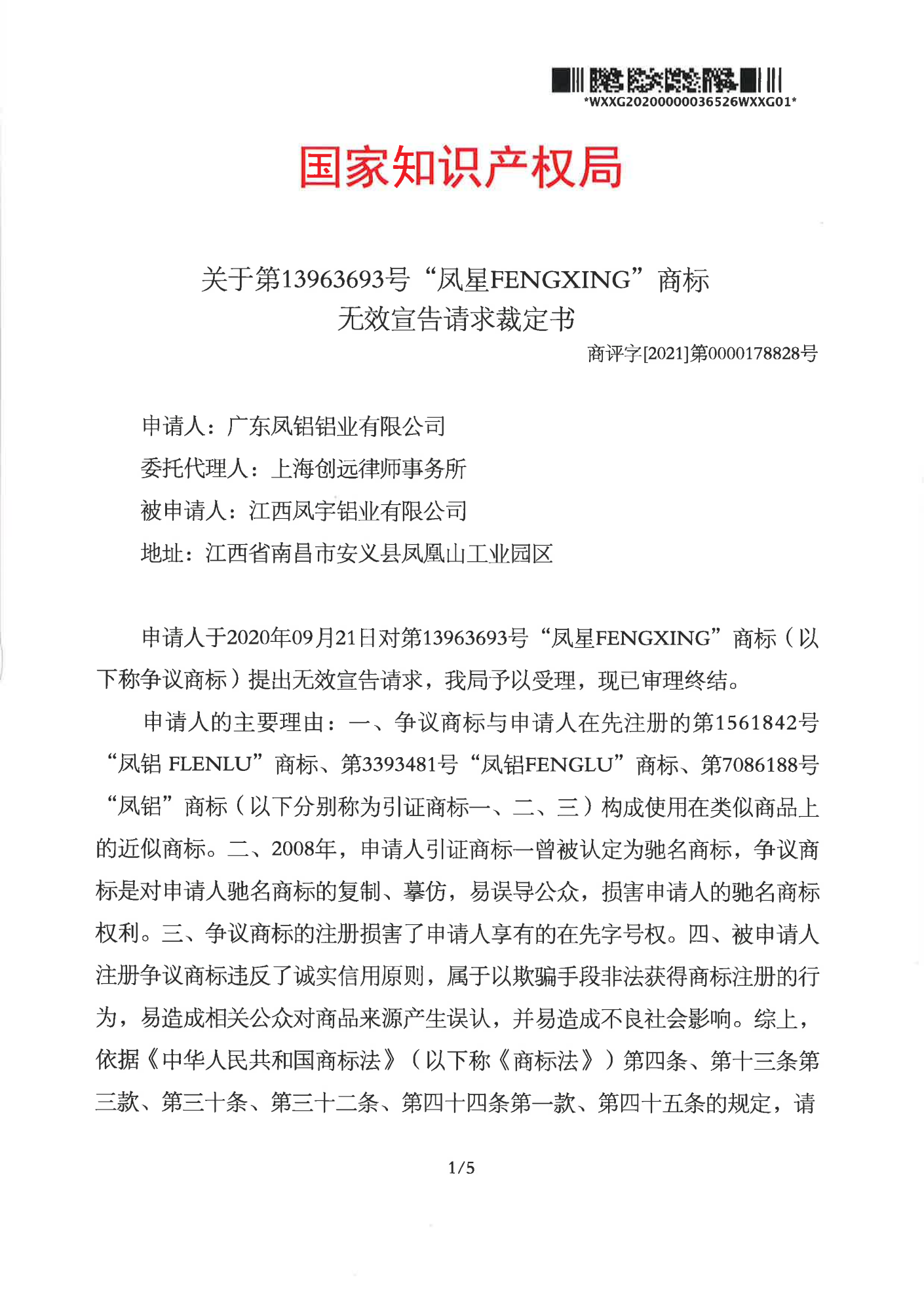 云浮辉知队 | 国家知识产权局:“凤星”商标无效
